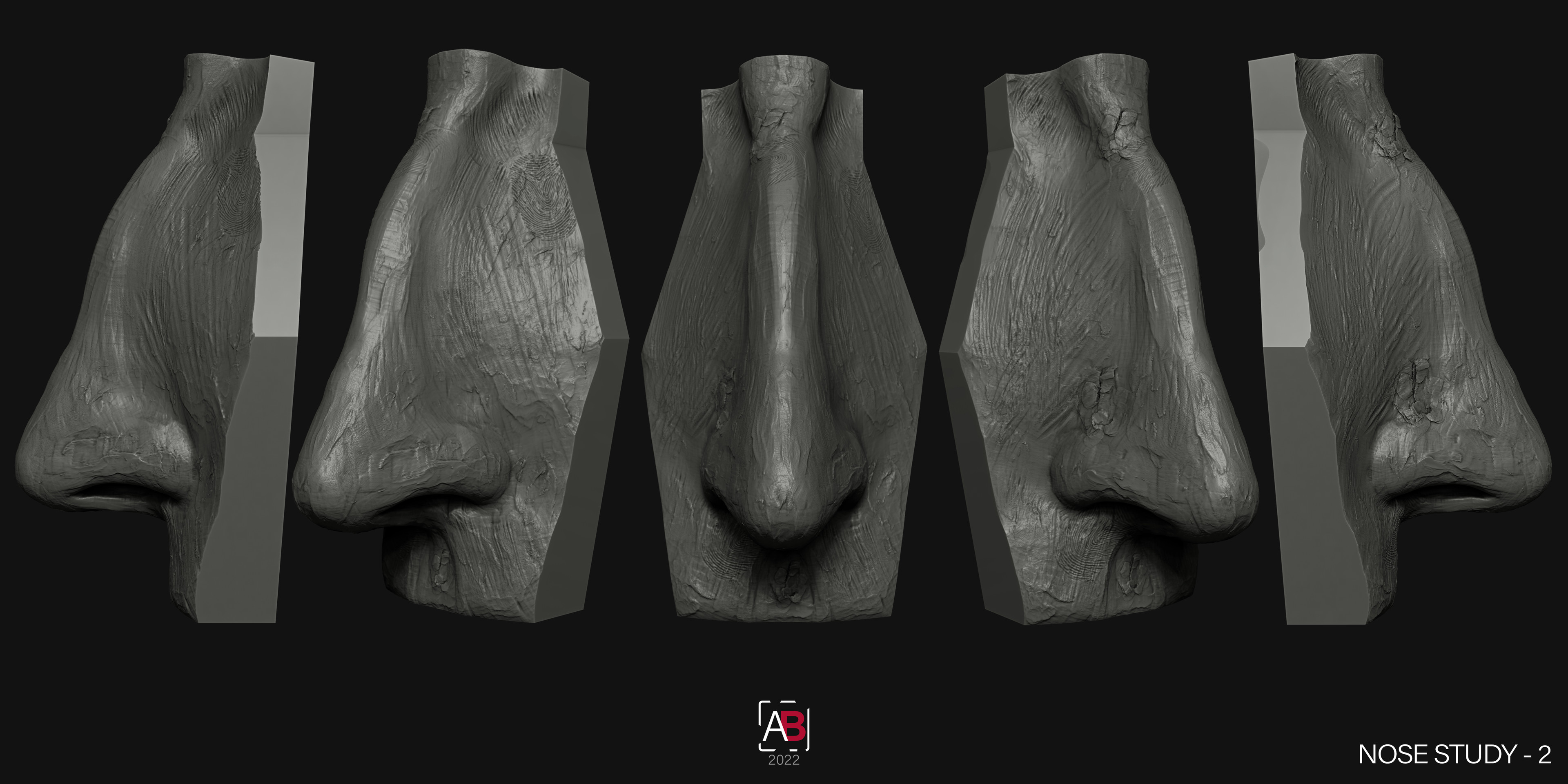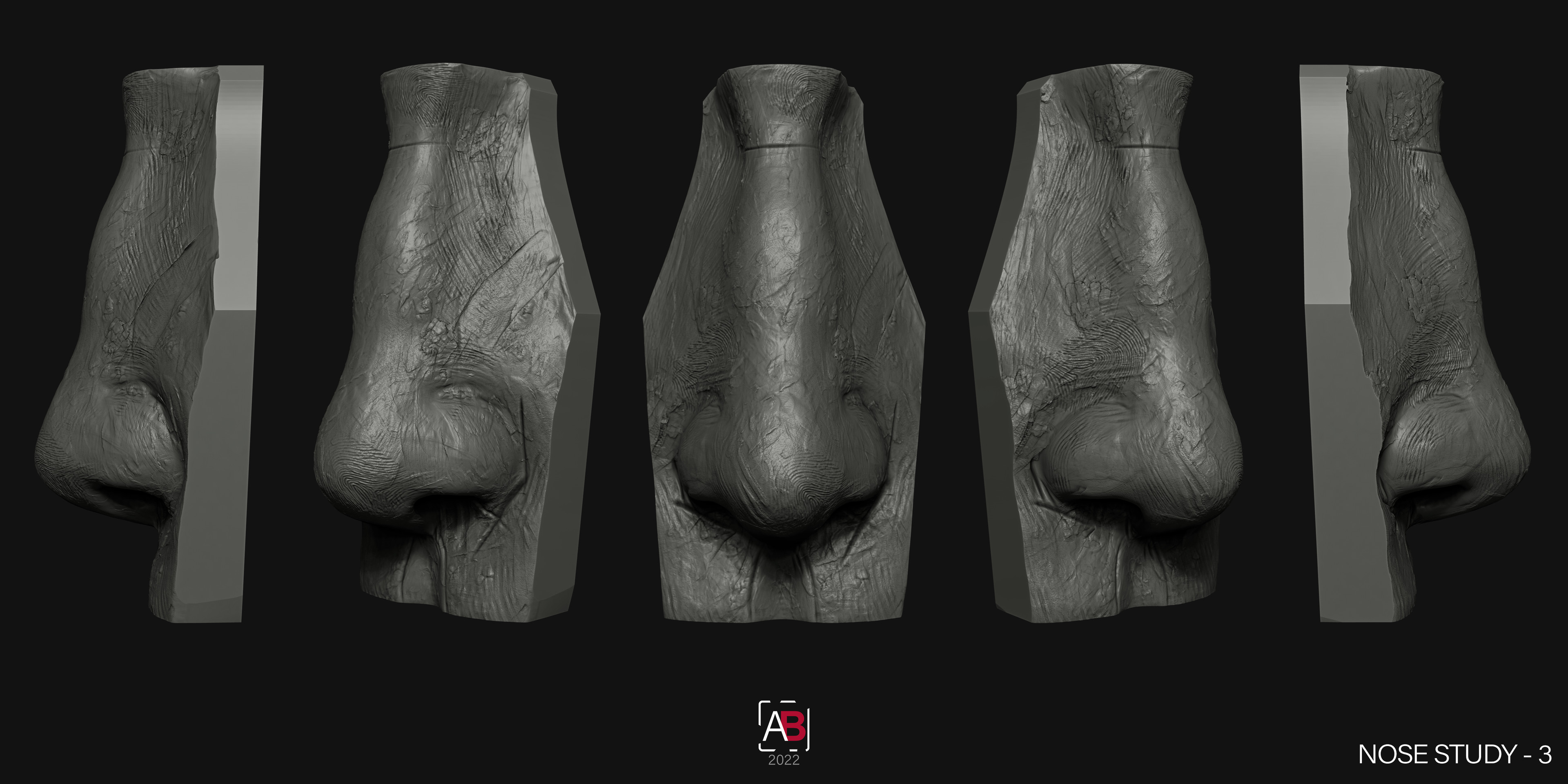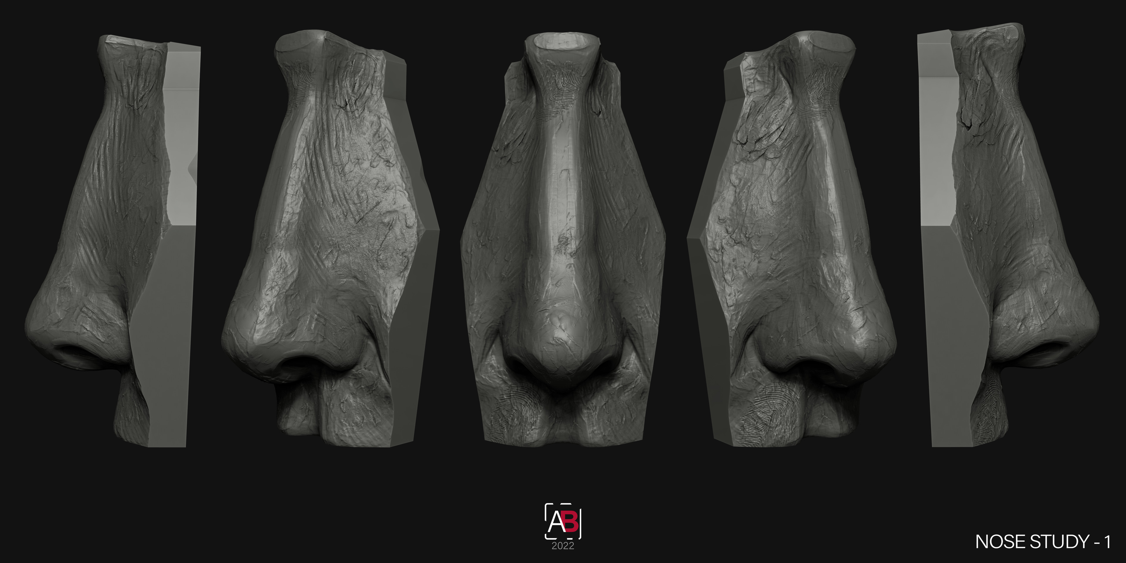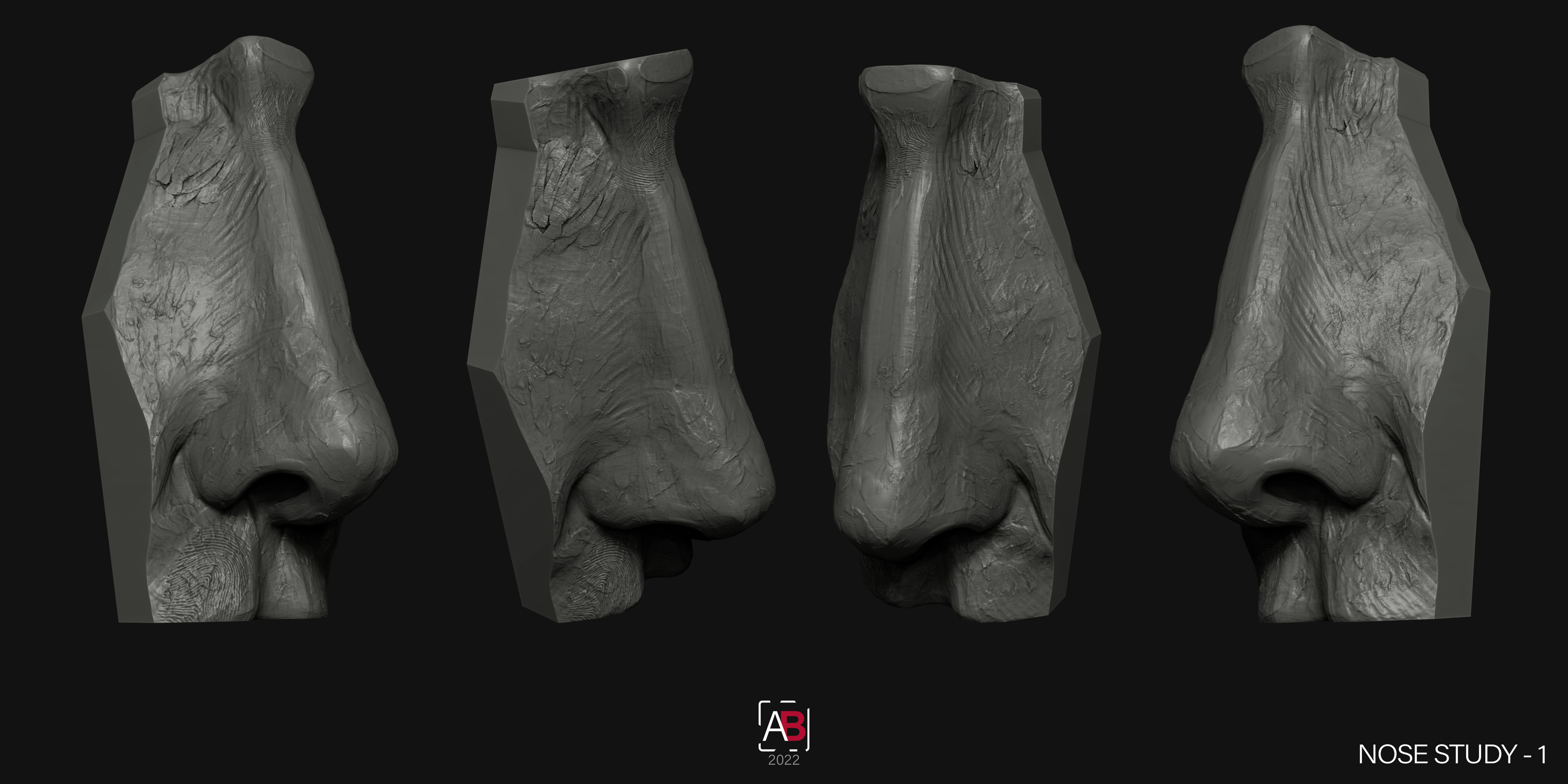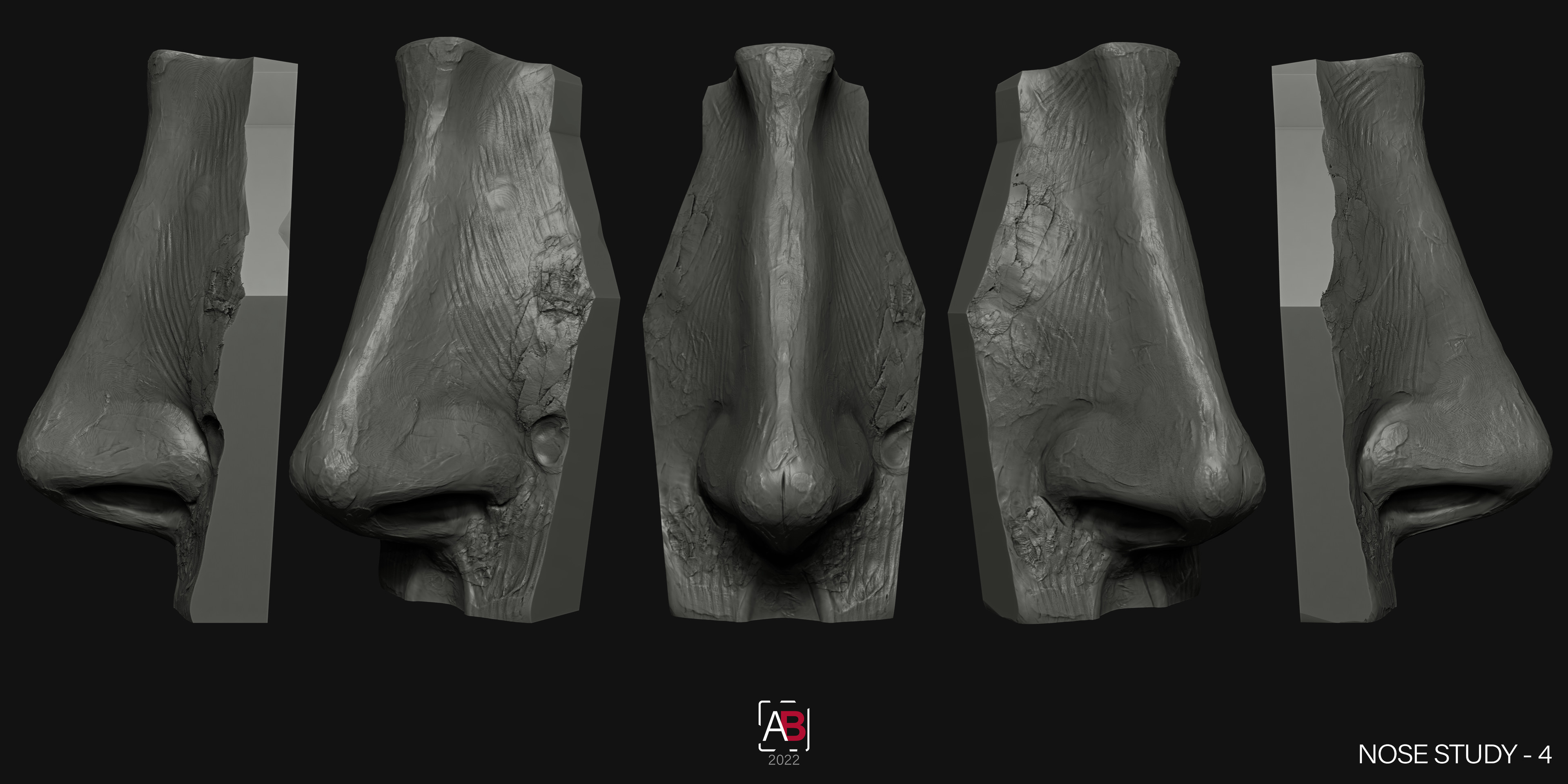 Quick 4 clay style anatomy sculpts of noses. Practising anatomy, speed and technique.